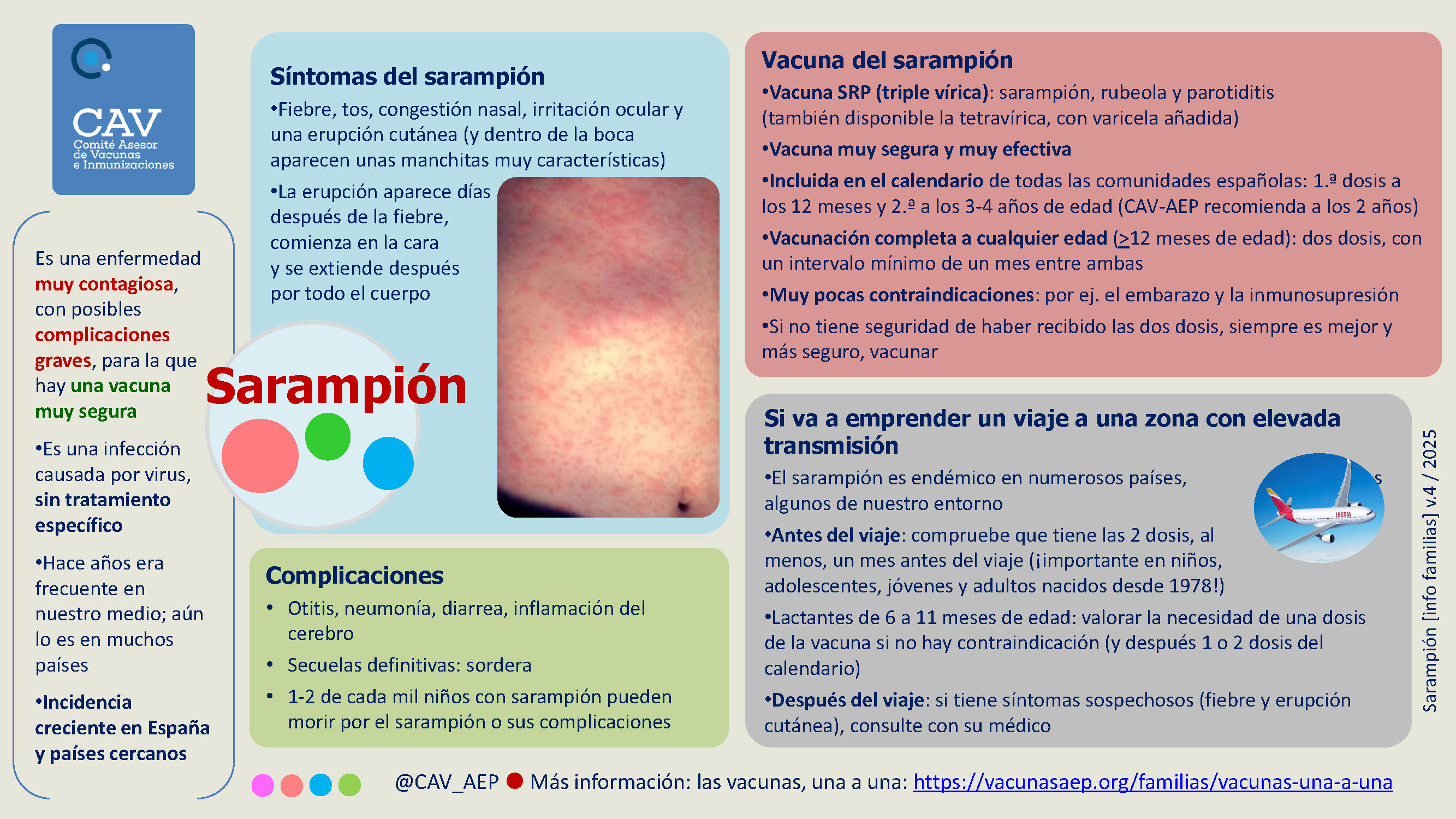 El sarampión es una infección muy contagiosa causada por un virus con posibles complicaciones muy graves. •
