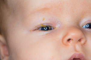 Es un cuadro caracterizado por inflamación, enrojecimiento y abundantes secreciones en los párpados del bebé, que puede asociarse o no a enrojecimiento ocular. Se manifiesta en los primeros 28 días de vida.